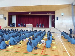 各教員からは、培良中学校での日々への感謝と、生徒諸君の頑張りや思い出に触れ、これからもチャレンジ精神を忘れず頑張ってほしいとメッセージがありました。