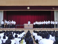 今日から2学期が始まりました。40日ぶりに全校生徒が体育館に集まりました。夏を越して一段とたくましくなった生徒諸君の目が生き生きとしていてうれしかったです。元気な校歌斉唱の後、私からは2学期に頑張ってほしいこととして3つ話しをしました。①新しい新鮮な気持ちで学習に取り組むこと。②合唱コンクールに向けて学級の団結・人と人とのかかわりを大切にすること。③ネットやスマホの使い方を考えること。の3つです。