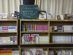 図書館に新しい本がたくさん入ってきています。図書支援の伊藤先生が来られる週は、毎日昼休みに開館しています。来られない週は(3週に1週来られます。)火・木・金の昼休みに開館しています。このところ、多い日で20人前後、少ない日で10人ほどが来ています。