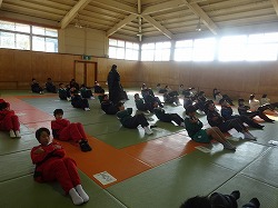 今日、9時から、標記の研修会を柔道場で開催しました。大会や練習試合等の予定がなかった部が参加しました。サッカー、男女バスケット、男子ソフトテニス、野球の5つです。