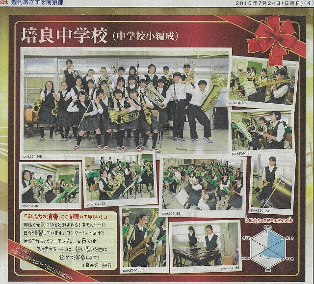 朝日新聞の朝スポ(7月24日版)に本校の吹奏楽部が掲載されました。紹介します。朝スポ編集の皆様、ありがとうございました。