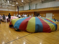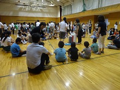 本日、中部住民センターで、京田辺市夏の地域学校が開かれました。京田辺市の小中学校の児童生徒と南山城、八幡の特別支援学校の児童生徒が集まり、ゲーム等を通じて交流しました。本校の生徒も自己紹介やゲームで張り切って活躍しました。