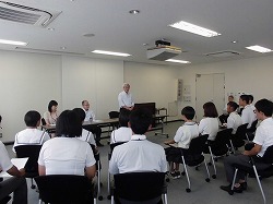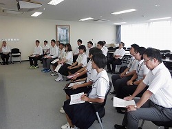ハンド部男子の近畿大会出場を教育長に報告し、激励をいただきました。田辺中、大住中とも合同で表敬訪問しました。キャプテンから、府大会の経過報告と近畿大会に向けての抱負を発表しました。培良は挑戦者の立場です。春から随分と伸びてきたチームです。思い切って大会に臨んでほしいと思います。