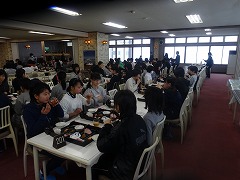 朝食 みんな食欲旺盛です。 学級写真1組 2組