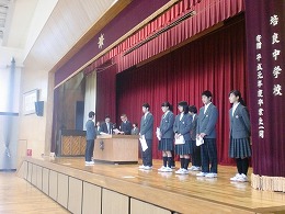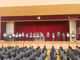 2学期の終業式を執り行いました。みんなで校歌を歌った後、私からは2学期を振り返り、学習面、生活面での、2学期の成果について話しました。表彰では、たくさんのコンクール等の表彰がありました。(タイムス参照)名前を呼ばれ、大きな声で返事をして起立する様子がきびきびとして、よかったと思います。