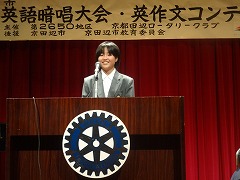 11月1日、京田辺市商工会館キララホールで京都田辺ロータリークラブ主催の標記の大会がありました。培良中からは、英作文、暗唱それぞれに1人ずつ、計2人が出場しました。