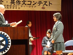 受賞した2人には、それまでの努力と当日の頑張る姿に、心からおめでとうと言いたいと思います。また、コンテストの企画・運営をしていただいたロータリークラブの皆様、本当にありがとうございました。