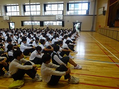 1学期終業式を行いました。通知表をはじめ配布書類は昨日渡しているので、本日は、式の後、短い学級活動と部活動の最後の練習を行って帰宅しました。式の後、1年間お世話になたALTのナターシャ先生の離任式を行いました。また、その後の全校集会では、明日からの部活の大会やコンクールに向けて壮行会を行いました。