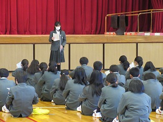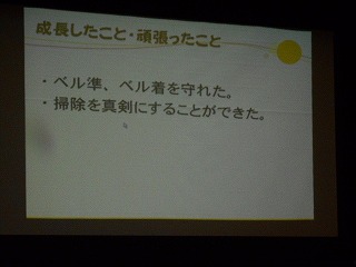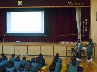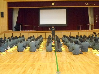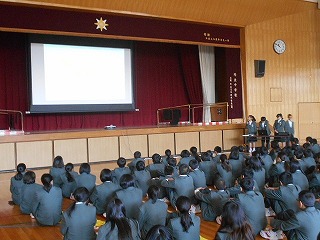 1年生は体育館で、パワーポイントを使ってまとめてくれました。