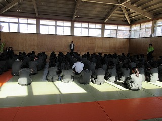 3年生は柔道場で。温かな雰囲気の中にも、いよいよ受験に立ち向かう真剣味が漂っていました。