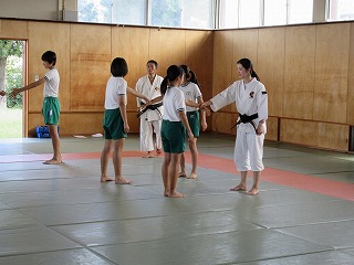 京都廣学館高校(少林寺拳法)少林寺拳法の基礎、特に護身の技を、元気で楽しい見本を見せていただきながら、実際にトライしました。