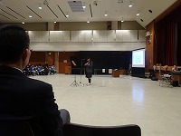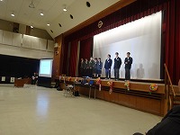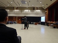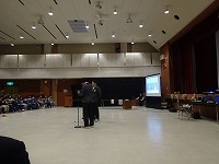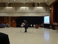 本日、田辺中央公民館で、市内の小中学校が集まり、「卒業生を励ます会」が開催されました。一人一人が卒業に向けて、自分自身が頑張ってきたことを発表したり、抱負を述べたりしました。本校も、得意の楽器を演奏したり、サッカーのリフティングを披露したり、英語学習や社会科学習の成果を披露しました。しっかりと発表できました。