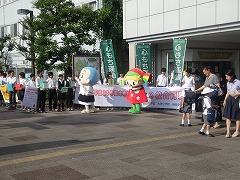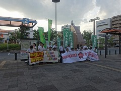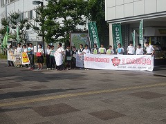 本日放課後、新田辺駅西口で市内3中学校(培良、大住、田辺)の生徒会役員が共同して、熊本地震復興の募金活動を行いました。3校の生徒会役員が一緒になるのは初めてですが、被災地のためにということで、すぐに一緒に声を上げ、募金を募りました。