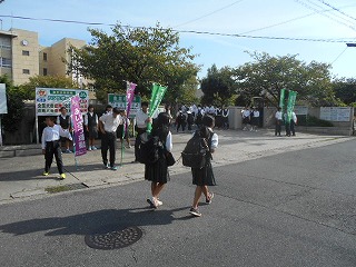 9月5日朝、生徒会本部と各学年学級委員会が合同で、挨拶運動を行いました。登校してくる生徒にさわやかに「おはよう」の声かけをしました。朝から互いに気持ちのいい挨拶が飛び交うと、学校全体が元気になります。来週からは合唱コンクールの取組が本格化します。学級・学年・学校全体の心を一つにして、進めていきましょう。