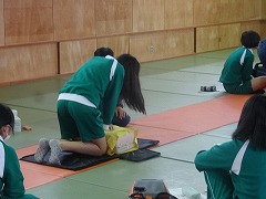 消防署のご協力で、1学級3時間ずつ行っていた救急救命講座が、今日の2組をもって終了しました。