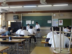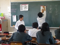 2年生は、5校時、6つの教室に分かれて、先日行われた職場体験学習のレポート発表を、事業所ごとに行いました。本番は、30日ですが、時間的にすべての事業所の発表を、30日で一度に行うことは難しいので、練習を兼ねて今日は予選会となりました。各グループとも真剣に、各自が体験した事業所について、仕事内容や働く喜びと苦労などを発表してくれました。30日の本番も楽しみです。