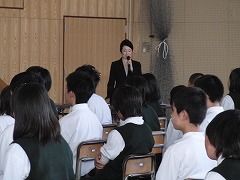 6校時、2年生は体育館で、NTTドコモの難波先生を迎えて情報モラル教室を行いました。我々の生活になくてはならないものになったPCやスマホなどの使い方、特に、誤った使い方をすれば、加害者にも被害者にもなるという恐ろしさなどについてお話をしていただきました。