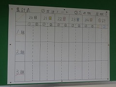 また、1年生は評議員を中心に、独自に、生活ノート(家庭学習の自主ノート)の取組や提出状況を調べ、同時に忘れ物の点検もしています。2年生は学習スタンダードを意識して、授業態度の点検を始めています。3年生は、先日の実力テストに続き、家庭学習ノートに力を入れています。