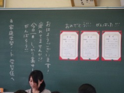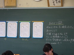 体育大会翌日、それぞれの学級で、体育大会の取組や当日の頑張りについて、話し合ったり、振り返ったりしました。結果は様々ですが、ここで得た個人としても集団としても頑張る力を、これからの学校生活に活かしてほしいと思います。