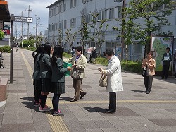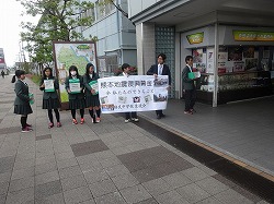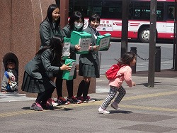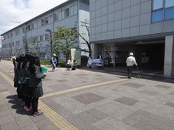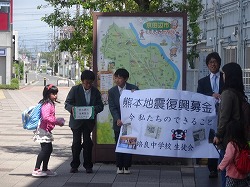 4月29日、11時より、新田辺駅西側ロータリーで、生徒会本部による熊本地震復興募金が行われました。道行く人の関心も高く、募金をしに、わざわざ戻ってきていただいたり、「頑張って」と励ましていただいたり、まだまだ世の中は捨てたものではないと改めて思いました。募金を行った生徒たちも、人の善意に触れ、元気をもらいました。集まった募金は、校内で集めた分も含め、赤十字を通じて現地の義捐金として役立てていただきます。