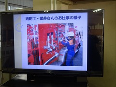 その後、京田辺市で実際に仕事をしておられる、女性の消防士の武井先生と男性の保育士の山本先生に登場していただき、仕事内容や、やりがいや苦労についてお話をしていただきました。仕事に対しての固定観念が少しはなくなったのではないでしょうか。自分の将来の仕事を決めるのに、本当に自分のやりたいことや適性を考えて選ぶことが大切で、男だからとか女だからということだけで仕事の選択肢を減らすのは、もったいないことだということがよく分かりました。