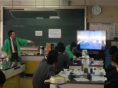 今日は、京田辺市役所農政課の渡邊様、井上様を社会人講師に迎えて、宇治茶(田辺のお茶)についての学習をしました。京田辺は宇治茶の産地として、特に玉露は有名です。君たちの先輩の中に、お茶で日本でも指折りの達人もおられることも教えてもらいました。