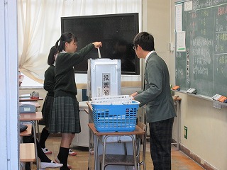 10月26日、6校時に立会演説会とその後に投票がありました。今回は、役職数に対し、立候補者数が同じで、すべて信任投票となりました。