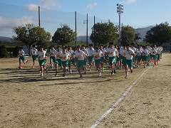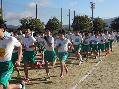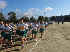 本日、校内マラソン大会を開きました。朝は少し寒かったですが、風もなく、日の光が温かくて、絶好の日和となりました。男子11キロ、女子9キロ、特別コース3キロに分かれ、培良中生が駆け抜けました。出場者全員が1時間30分過ぎまでにゴールしました。みんなベストを尽くしたと思います。走り終わった後の、走り切って満足な表情や、思っていたよりやや不本意で、悔しがっている表情など、多くのドラマが生まれました。今日はゆっくり休んで、明日からの学校生活を、また、きちんと頑張り、学期を締めてほしいと思います。