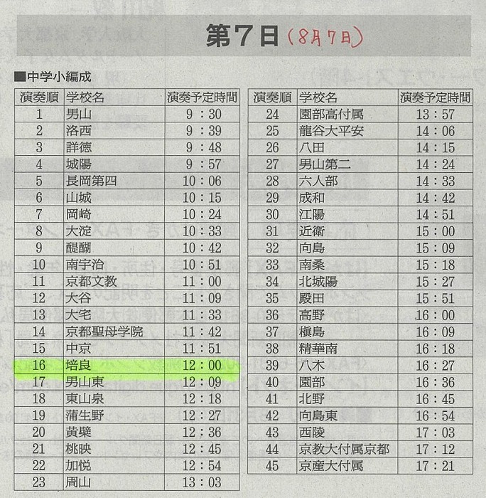 吹奏楽部が、朝日新聞、朝スポに紹介されました。コンクール本番まであと1週間、毎日の練習にも熱が入っています。がんばれ 培良中吹奏楽部!コンクール出演は、8月7日(月)12:00 京都コンサートホールです。