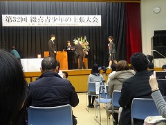 本校からは1年生山添さんが参加しました。挨拶の大切さについて、堂々とした態度で話をしてくれました。挨拶は、元気に、はっきりとという、まさに主張通りの振舞いで、素晴らしかったと思います。大変寒い中でしたが、準備等関係の皆様、ありがとうございました。