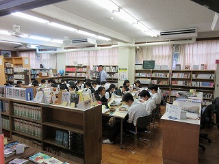 昨日に続いて2年生の社会科でも、図書館を使って授業が行われていました。