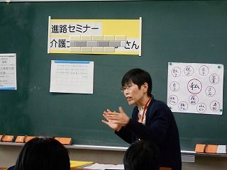 1年生は、5・6時間目の2時間を使って進路セミナーに取り組みました。生徒が、実際に働いている方々の人生観、職業観、価値観に触れ、自分の生活を振り返り、将来の進路や自分の生き方を考えることを目的にして開催されました。各自が、5つの講座から2つを選択して、セミナーに参加しました。