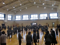 全校が体育館に避難、整列し、点呼が終了したのが避難指示より4分13秒。昨年度に出た最高記録の3分42秒には及びませんでしたが、急きょ体育館に場所を変更したことなどを考えると、素早い移動だったと思います。