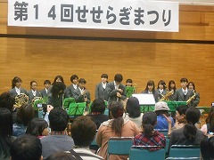 11月12日(土)、吹奏楽部は、せせらぎ祭に今年初めて参加しました。地域の多くの方に演奏を楽しんでいただきました。出演の時間も約25分と、結構時間もあり、楽しいステージになりました。演奏も、10月の初めころに比べるとさらにうまくなって、余裕も出てきたと思います。