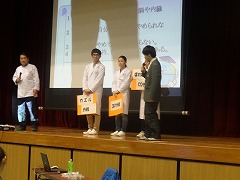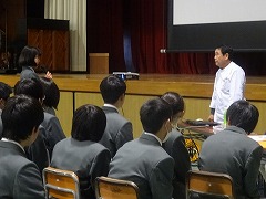学校公開の6校時、全校で薬物乱用防止教室を開きました。講師は、本校学校薬剤師の山﨑博章先生と薬学部の学生3人の皆様です。薬物の恐ろしさ、特に1度薬物に手を出せば、適切な治療を受けなければやめられないこと、たとえやめられても、フラッシュバックを絶えず恐れなければならないこと、そして、そのような危険な薬物が、今後身近な人から誘われる可能性があることなど、豊富な例と、力強い言葉で教えていただきました。