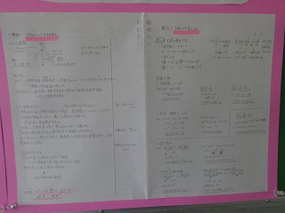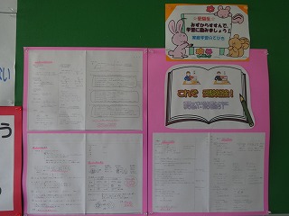 3年生 学年掲示板 家庭学習ノートの頑張っている様子が紹介されています。工夫の見られるノートです。