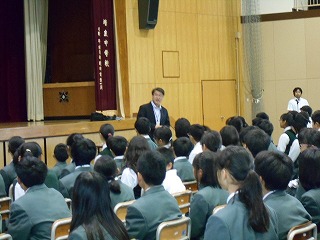 5月19日(土)の土曜参観を利用し、6時間目に保護者も参加していただき「薬物乱用防止教室」を開催いたしました。スクールサポーターの今津さんより薬物乱用の危険などについてパワーポイントを交え、1時間程度話をしていただきました。生徒全員、熱心に聞き入っていました。