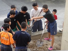 ハンド部は花壇の整備をがんばってくれました。