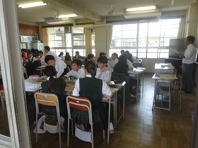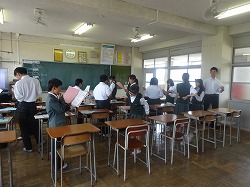 私もいくつかの授業を参観しました。おおむね生徒諸君は授業に良く集中しています。しかし、中には、背骨が曲がっていて姿勢の悪い生徒や、発表の時に声が小さかったり、下を向いて発表していたりしてしまう生徒等と、まだまだ改善の余地があります。注意を促したいと思います。