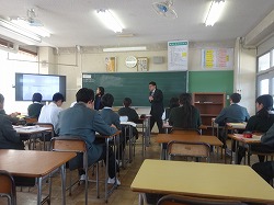 3年の英語は、ALTとともに受け身形を使った文を作るエクササイズをゲーム形式で取り組んでいました。なかなか反応よく、文もきちんとできていましたが、復習をしっかりとやっておくことが大切です。今日はかなり暑くなりそうです。部活は熱中症に気を付けて頑張ってください。