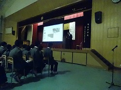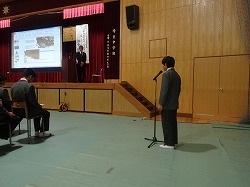 10月28日(金)、京都府山城郷土資料館の田中先生をお迎えして、京田辺市、とりわけ、培良中校区の歴史に焦点を当てて、お話をしていただきました。約1時間、この地の旧石器時代から始まり、飯岡の弥生期の遺跡や古墳期の遺跡、中世の山城国一揆の時の草内城、江戸期の河原東村の話など、学校の周りの自然や道などが、長い歴史に彩られていることがわかりました。特にこの地は木津川と、古来からの陸上交通の要としての特徴が顕著でした。