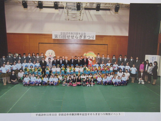 11月11日の市制20周年記念第15回せせらぎ祭りの記念式典に、本校吹奏楽部が出演したことは、以前にお知らせしましたが、本日、せせらぎの館長様が、その時の写真を持ってきていただきました。幼稚園、保育園等のコラボで、とても温かな式典になったことを思い出しました。館長様、ありがとうございました。