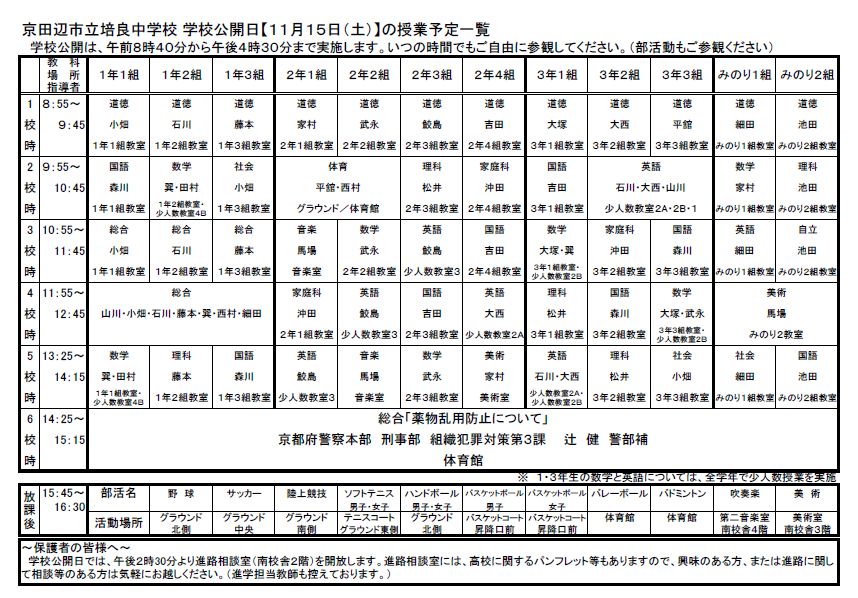 午前8時40分~午後4時30分(部活動参観含む)の公開となります。