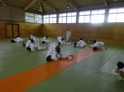 うつ伏せになった相手を、制限時間内にあおむけにひっくり返すという試合でした。楽しそうに、また熱心に頑張っていました。柔道場前に脱いだ靴が、びっしと揃えて並べられてたことが、生徒諸君の中学生としての自覚と成長を表していると感じました。