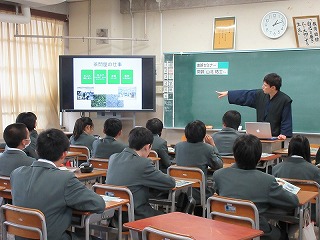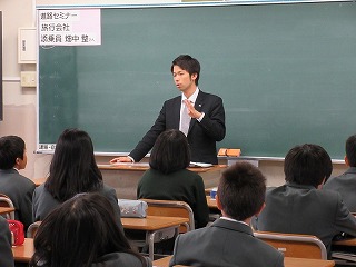 1年生は、5・6校時、社会人のゲストティーチャーの話を聴く「進路セミナー」を行いました。5つの講座から、自分の聴きたい講座を2つ選んで、5・6校時に聴くという取組です。