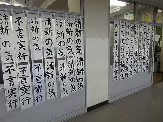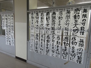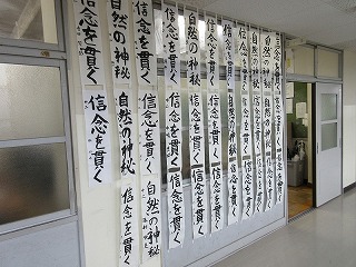 各学年とも廊下には書き初めが展示されています。年に一度はこのように墨で字を書いてみるのもいいですね。