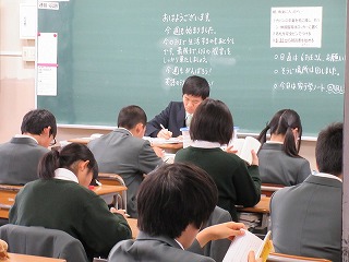 朝読書。皆、本に集中して過ごしています。でも、夏に比べるとやや登校時間が遅くなってきている人もいます。早寝早起きを心がけましょう。