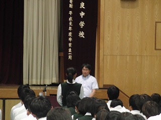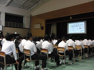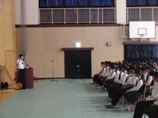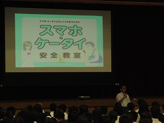 6月14日6校時、体育館で、全校総合、情報モラル教室を行いました。講師は、NTTドコモの池田先生です。ネットの特徴(良い点、気を付けなければならない点)、ネットのトラブルの具体例と注意点、より良い携帯やスマホの使い方等、スライドや実例を使ってわかりやすく説明をしていただきました。