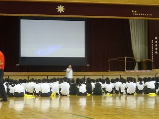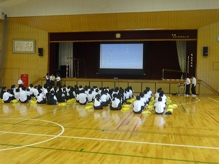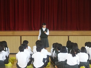3年生 はじめのあいさつで集会のねらいがはっきりと示されました。 集中して話が聞けています。