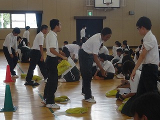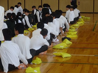 学級委員の司会運営で、簡単なゲームに取り組みました。 最後は進路実現を願う言葉になりました。